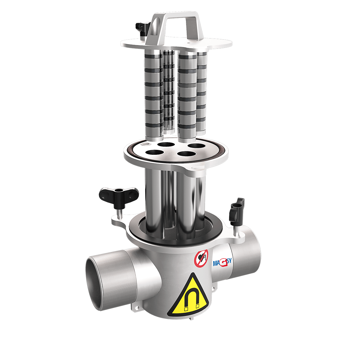 Magnetické jádro separátoru je vybaveno extrémně silnými neodymovými magnety, které zajišťují vysokou účinnost zachycení i velmi jemných feromagnetických nečistot. Díky tomu je dosaženo maximální čistoty produktu.