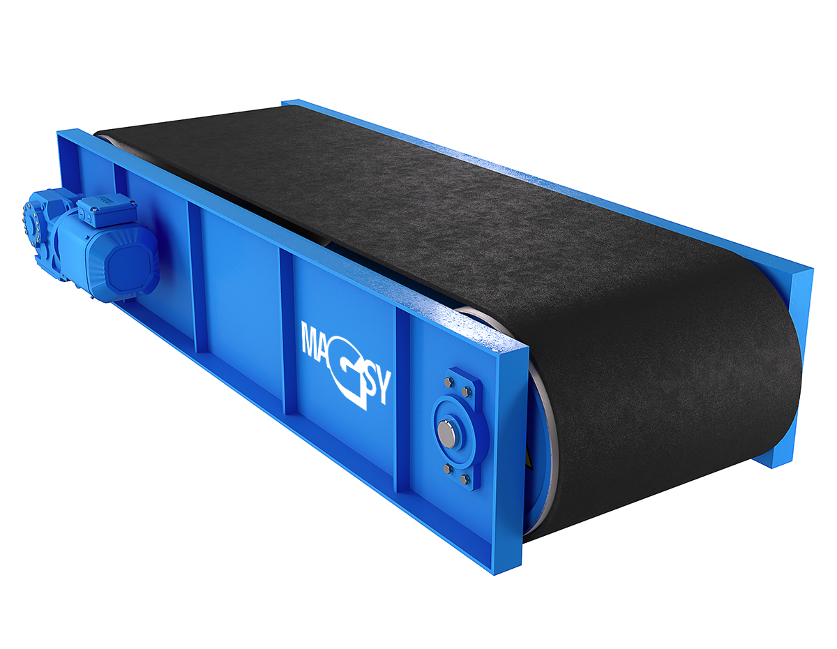 Magnetický válec je možné použít tam, kde je separovaný materiál dopravován pásovým dopravníkem.